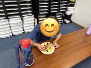 自分の好きな形や好きなサイズに上手に焼き上げて、みんなでいただきますをして食べました😊
