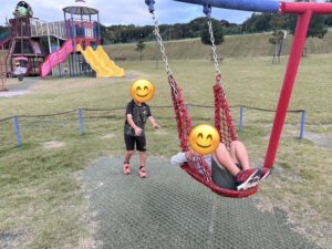 鬼ごっこのあとはくつろぎブランコでみんなで揺られながら呼吸を整えて「またいこうね」と約束して帰りました。