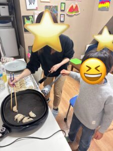 餃子も職員と一緒に焼きました🥟