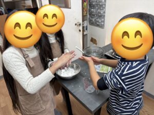 当たりも作っておこうと、ビッグサイズやドーナツ型、きなこたっぷりなどなど…楽しみながら取り組めた調理活動でした。