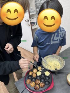 先日、児童さんと一緒にベビーカステラ作りを行いました。