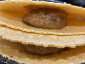 たこ焼きをソースにからめたものをえび煎餅にはさんだものです!初めて食べたけど美味しかったです✨