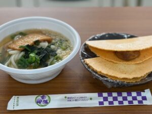 その日のメニューは「きつねうどん🦊とたこせんべい🐙」