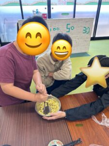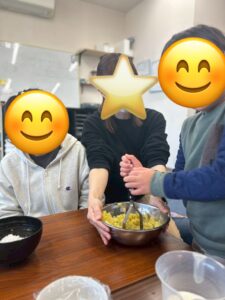 先週、土曜日の活動で、みんなでスイートポテト作りを行いました!