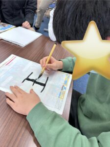 筆を手に取り、一画一画、真剣な表情で文字と向き合う児童さんたち。