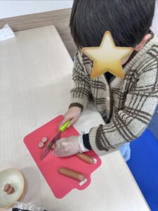 今日は調理のお手伝いで、児童さん、ウインナー切りにチャレンジ!