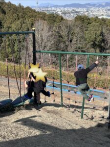 ロープ遊具に挑戦したり、「次はここ!」と声をかけ合いながら、