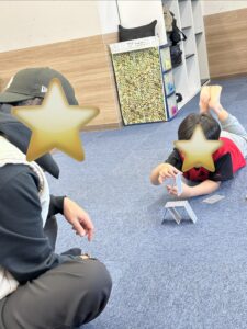 「ここに置いたらどうなるのかな?」と考えながら、そーっとカードを重ねていく姿がとても印象的でした。