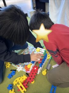 ブロック遊びに夢中の2人。