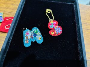 こちらは春らしくポップな色合いでかわいいイニシャルのキーホルダーを開発中~!!