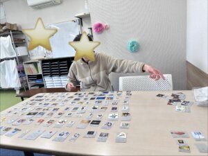 たくさんカードを綺麗に並べながら、「これはこういうカードなんだよ」と一つ一つ説明してくれました。