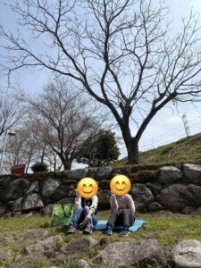 桜や木蓮など季節の花が咲いていたり、少し動くとじんわり汗が流れ、季節を感じながら外遊びを楽しむことができました。