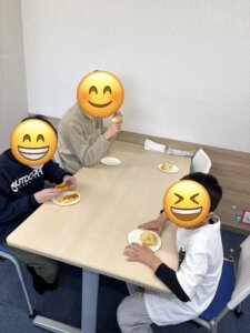 焼き上がるとみんなで席に座り、