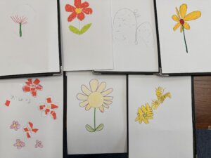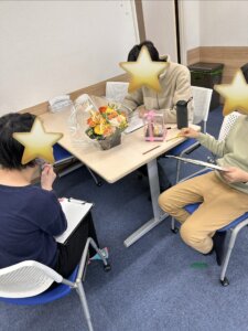 お花の絵を見ながら、それぞれのペースでじっくり観察し、描いていきました。